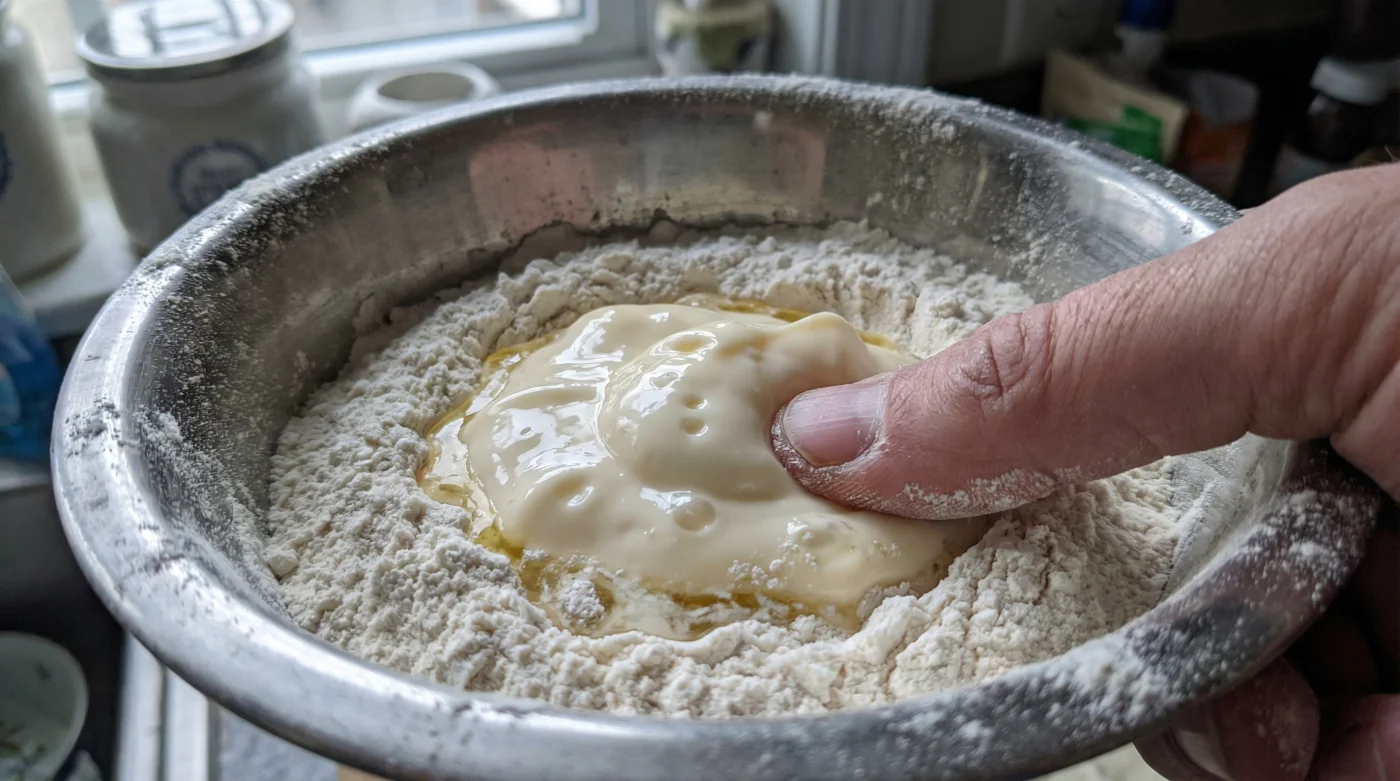 To try this yourself, you need to abandon your usual aggression. Measure out your standard flour and a generous pinch of sea salt. Instead of dropping in your diced butter, measure out the exact same volume of full-fat mayonnaise. Do not use a light or diet version; those contain excess water and thickeners that will ruin the delicate structure of your bake. The fat is doing all the heavy lifting here.