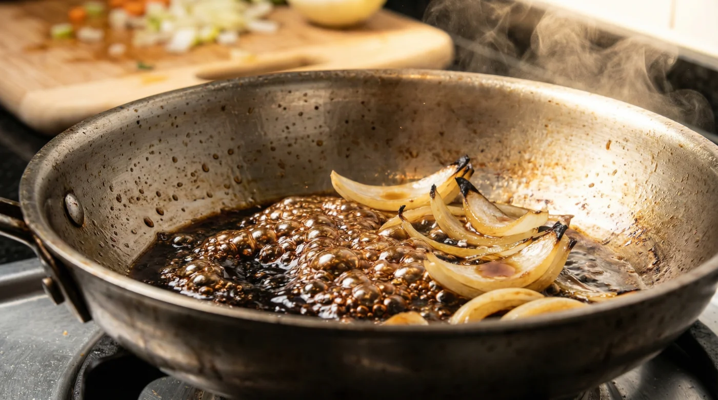 I learned this during a chaotic Friday evening service at a tiny pub in Cornwall. When an order demanded a massive batch of onion gravy, Tom, the head chef, threw a mountain of onions into a wide pan. Once they softened, he tipped a splash of dark soy sauce over the sizzling mass. Within minutes, the onions collapsed into a rich, dark tangle, proving to be a masterful manipulation of culinary mechanics rather than a cheap shortcut.
